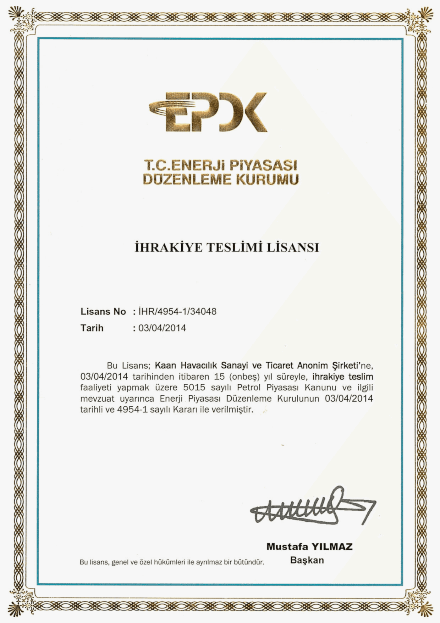 Enerji Piyasası Denetleme Kurumu onaylı İhrakiye Lisansı