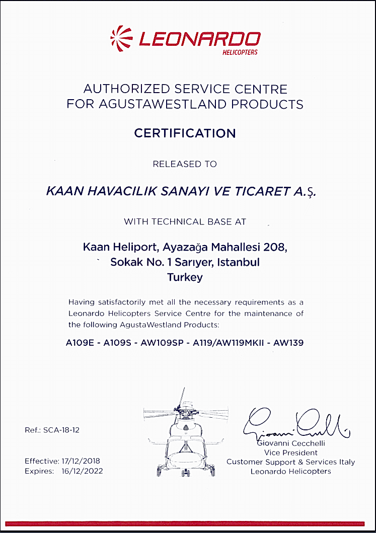 AgustaWestland Products /Yetkili Bakım MerkeziEASA Yetkili Bakım Merkezi